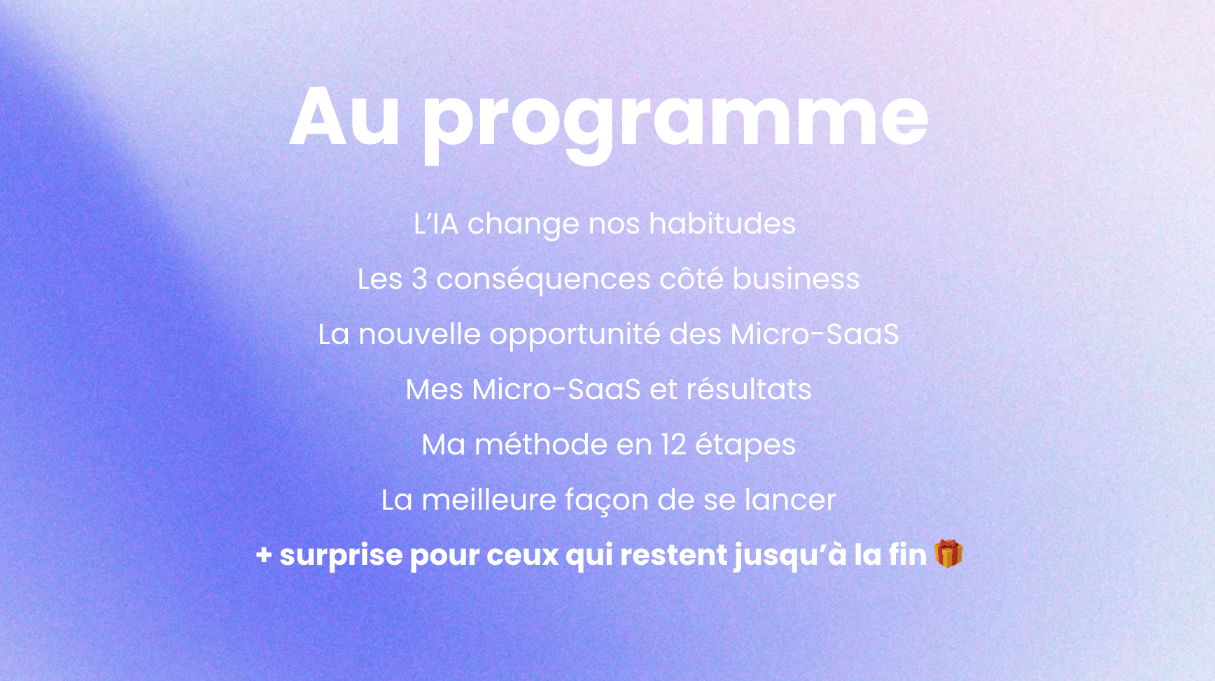 + acceÌde au replay de mon dernier workshop sur les Micro-SaaS